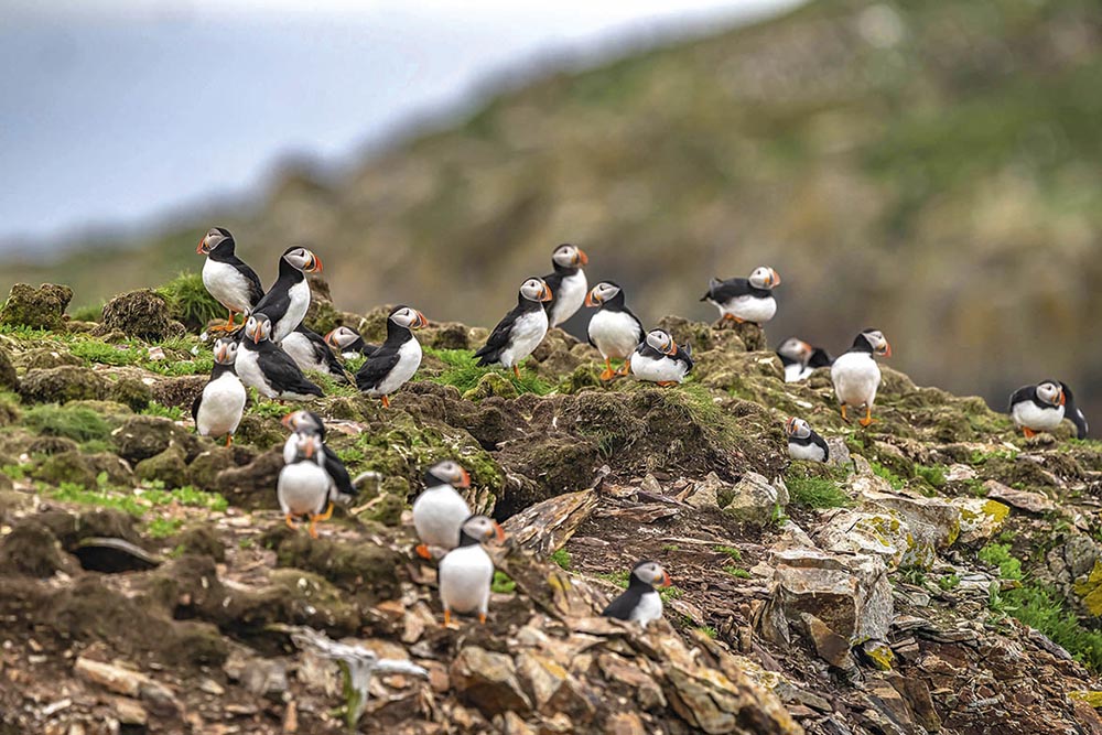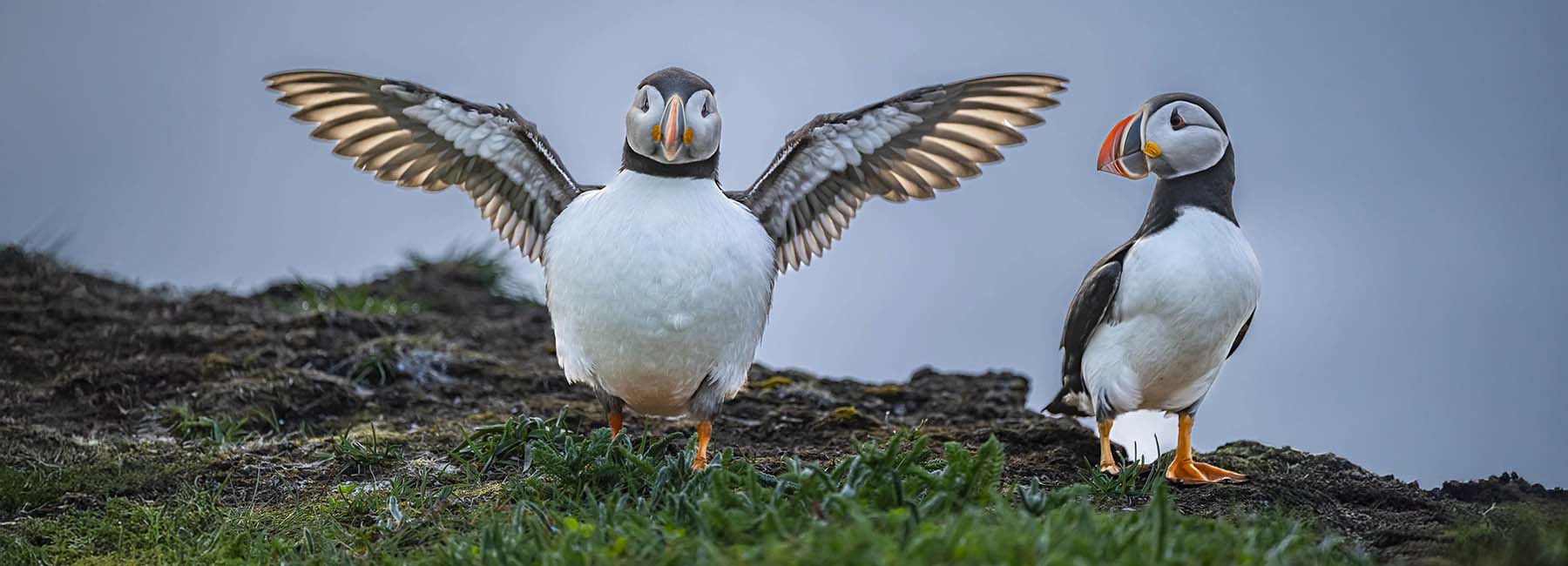 Naast grote aantallen Jan van Genten voelt ook de clown onder de zeevogels zich thuis op de ruige kusten van Newfoundland: papegaaiduikers. Met hun kleurrijke snavels, die na de broedtijd afvallen, en hun bijzondere ogen lijken ze echt op clowns. Hun grappige, stuntelige gedrag maakt het beeld compleet.