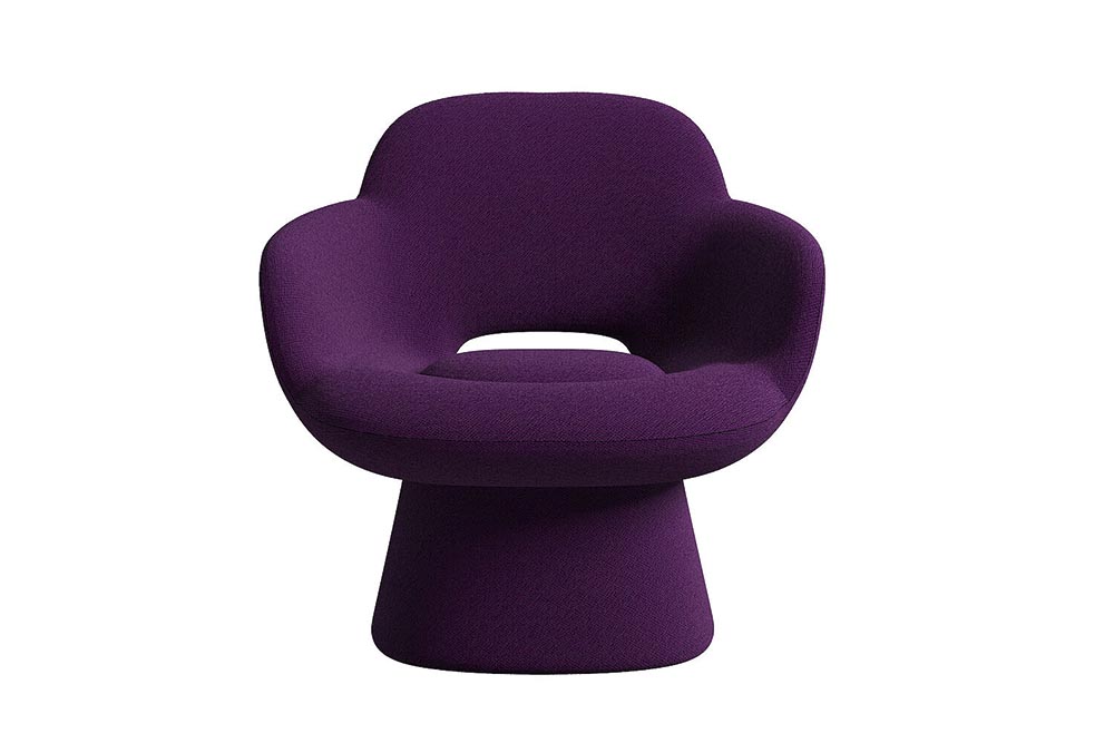 De Duitse ontwerper Sebastian Herkner breidde zijn samenwerking met Cappellini uit met deze leuke Kwado, een gestoffeerde stoel die zich kenmerkt door een samenspel van holle en bolle ruimtes, waardoor het lijnenspel wordt versterkt en er tegelijkertijd een licht en dynamisch effect ontstaat. In vaste en draaibare uitvoering. De bijpassende poef is als ‘negatief’ van de poot ontworpen; erg mooi! www.cappellini.com