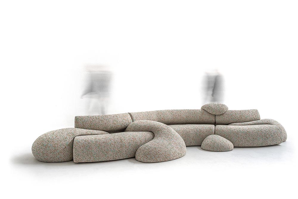 En weer weet Patricia Urquiola feilloos de huidige tijdgeest te vangen in een zitmeubel. Gruuvelot voor Moroso is een zitsculptuur van losse, amorfe vormen waarmee eindeloos gevarieerd kan worden. Als een object in voortdurende metamorfose. De stof is geproduceerd met een printtechniek op waterbasis, die het waterverbruik met 90% en de uitstoot van broeikasgassen met 80% vermindert ten opzichte van traditionele processen. www.moroso.it