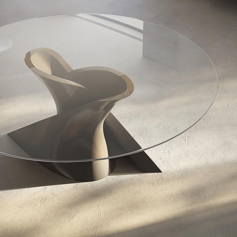 De meeste vernieuwing zagen we eigenlijk bij de tafels en dan bij de poten om precies te zijn. Ook hier overheersen sculpturale, ronde vormen. Helemaal onder glazen tafelbladen zijn deze prachtige poten optimaal te zien. Bij deze tafel Valzer van Natuzzi lijken de poten wel twee figuren die samen een wals dansen. Vervaardigd met CNC-technologie en afgewerkt met glanzende lak.
