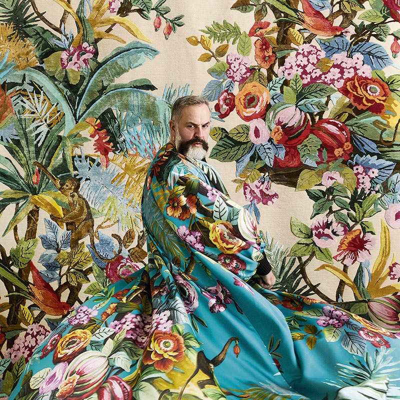 Exotic Jungle, een dessin van Simone Guidarelli, is er nu ook als vloerkleed. De naam spreekt voor zich met dit levendige tafereel van bloemen, planten, bladeren en dieren. Bijzonder is dat de gebruikte kleuren allemaal plantaardig zijn. Een limited edition uit de collectie van Illulian.